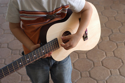 Isaac with the guitar that Uncle AJ and Aunt Julie gave him. Probably the biggest hit of the day. Between that and the cowboy hat from Papa and Noni, Isaac has been the spitting image of Garth Brooks lately. Hmmm. At least he's thrilled with himself--yesterday he said, "This is the BEST music I've ever heard in my entire LIFE!"